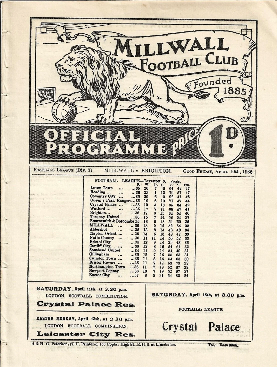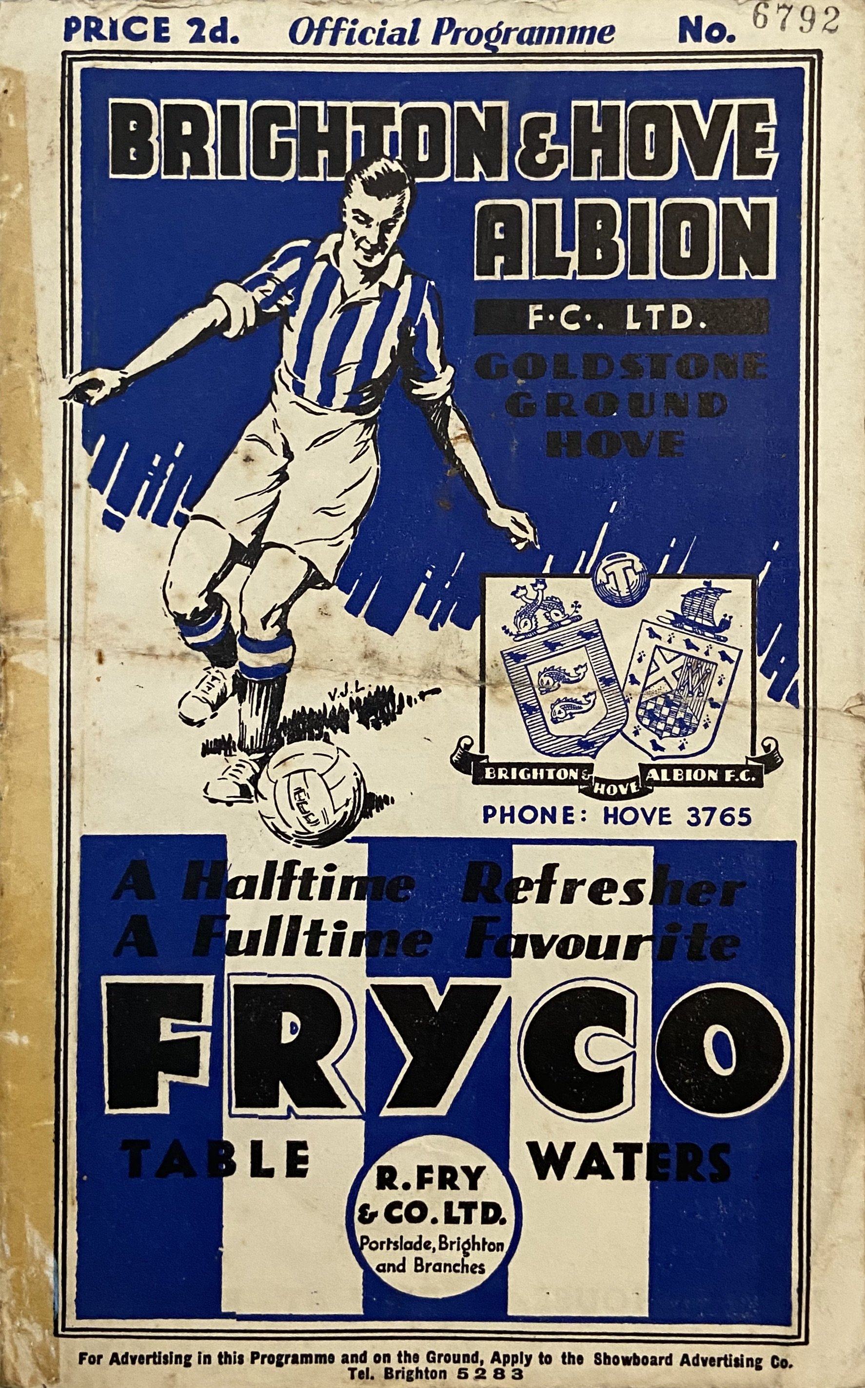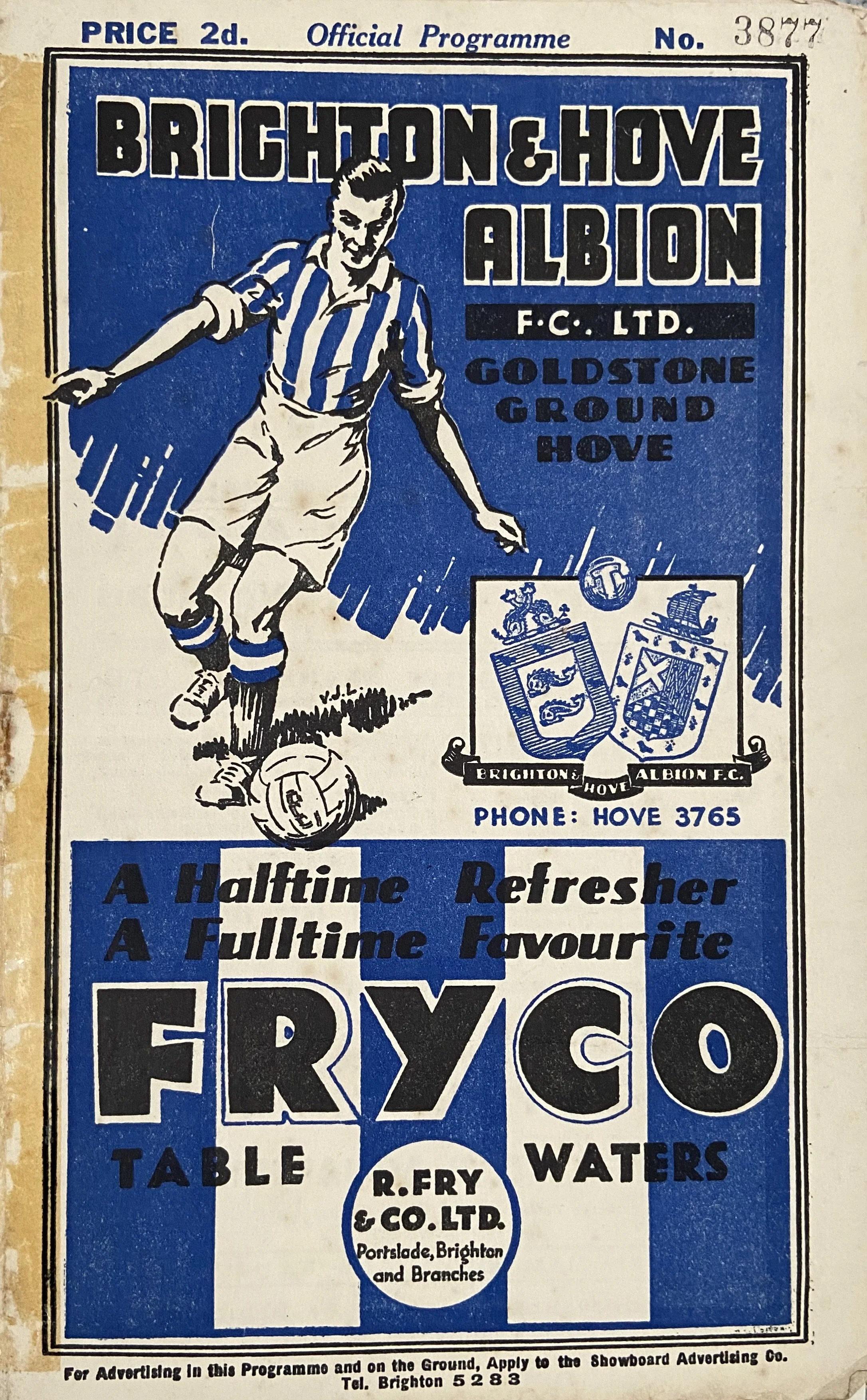 Few details are known about this fixture, played at The Goldstone on a Wednesday afternoon in October 1930