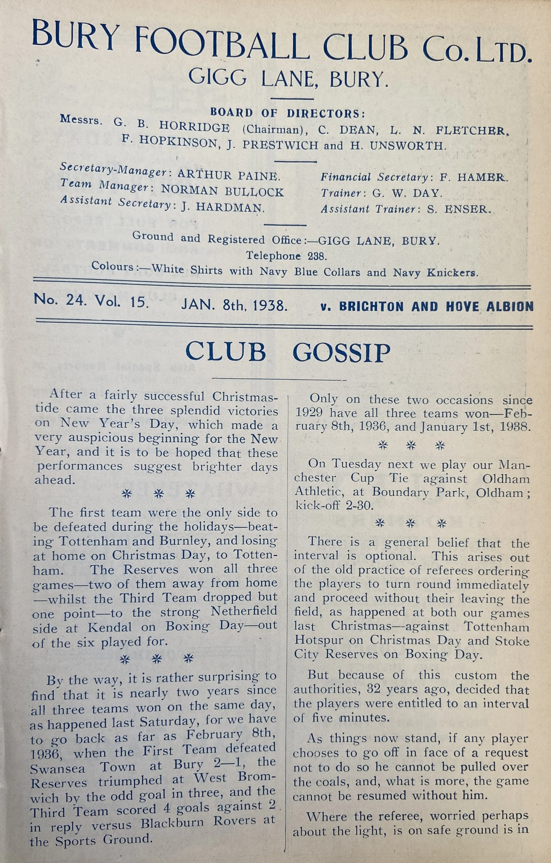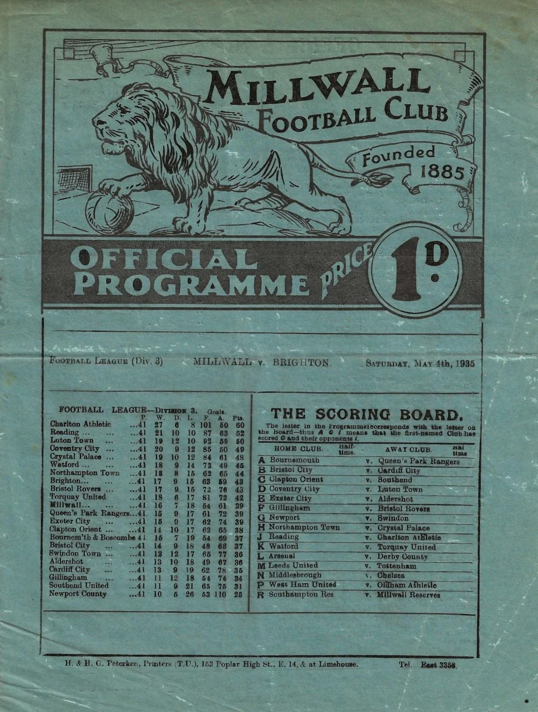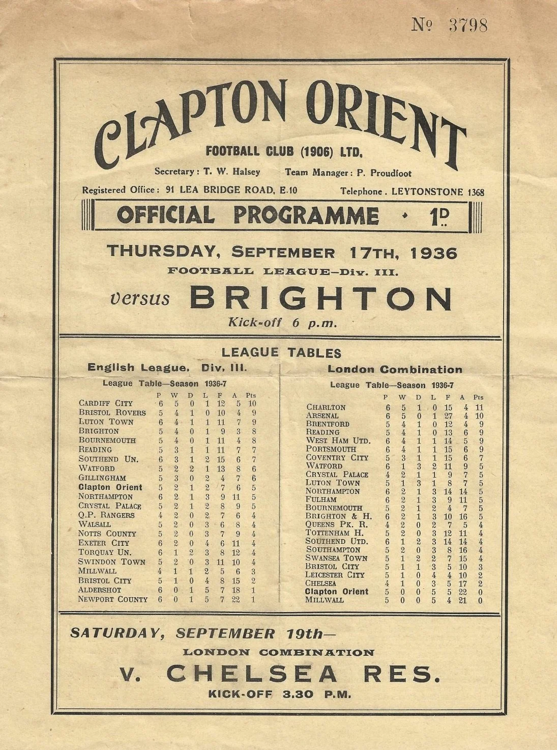 Few details are known about this fixture, played at The Goldstone on a Wednesday afternoon in October 1930