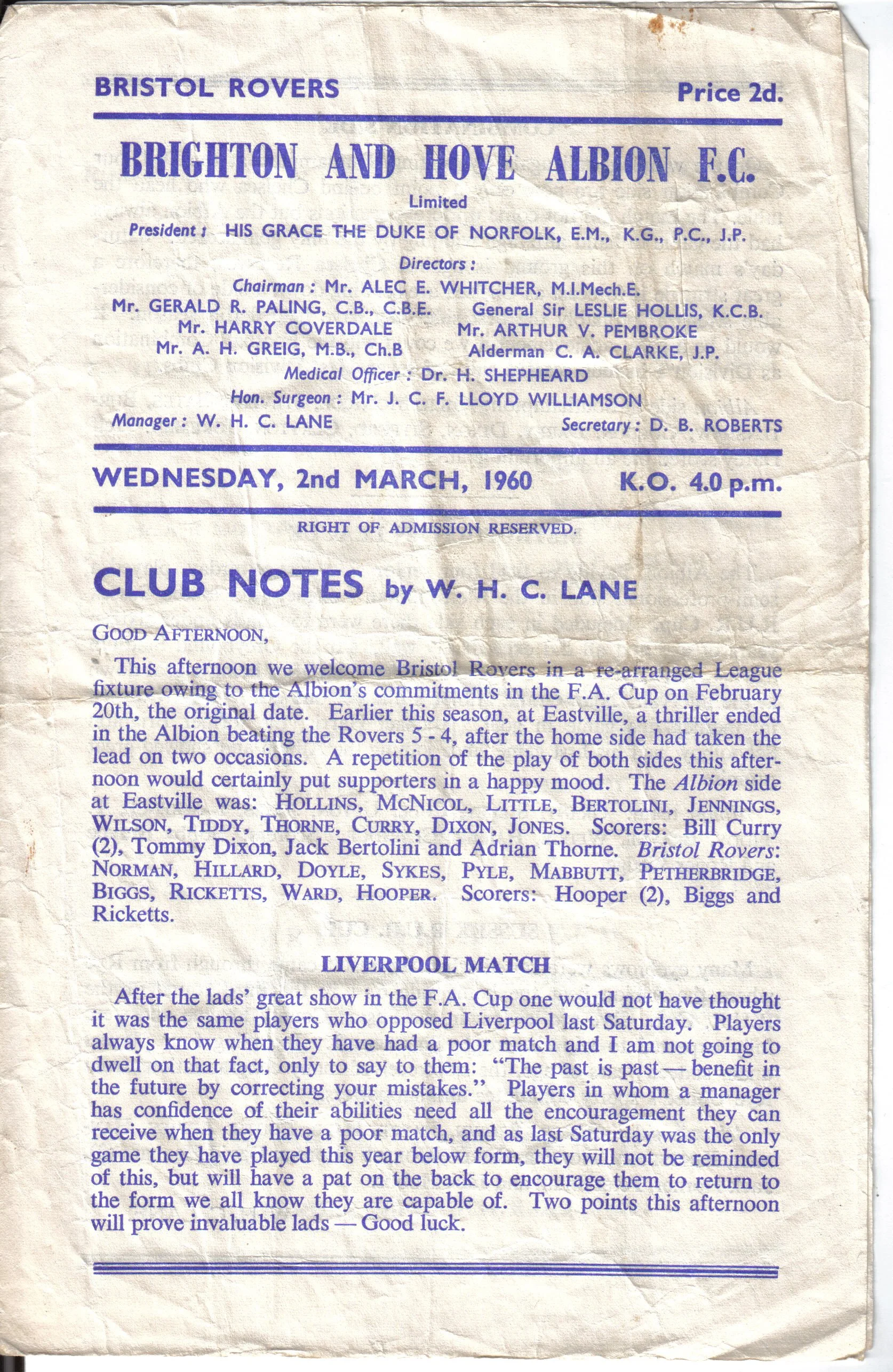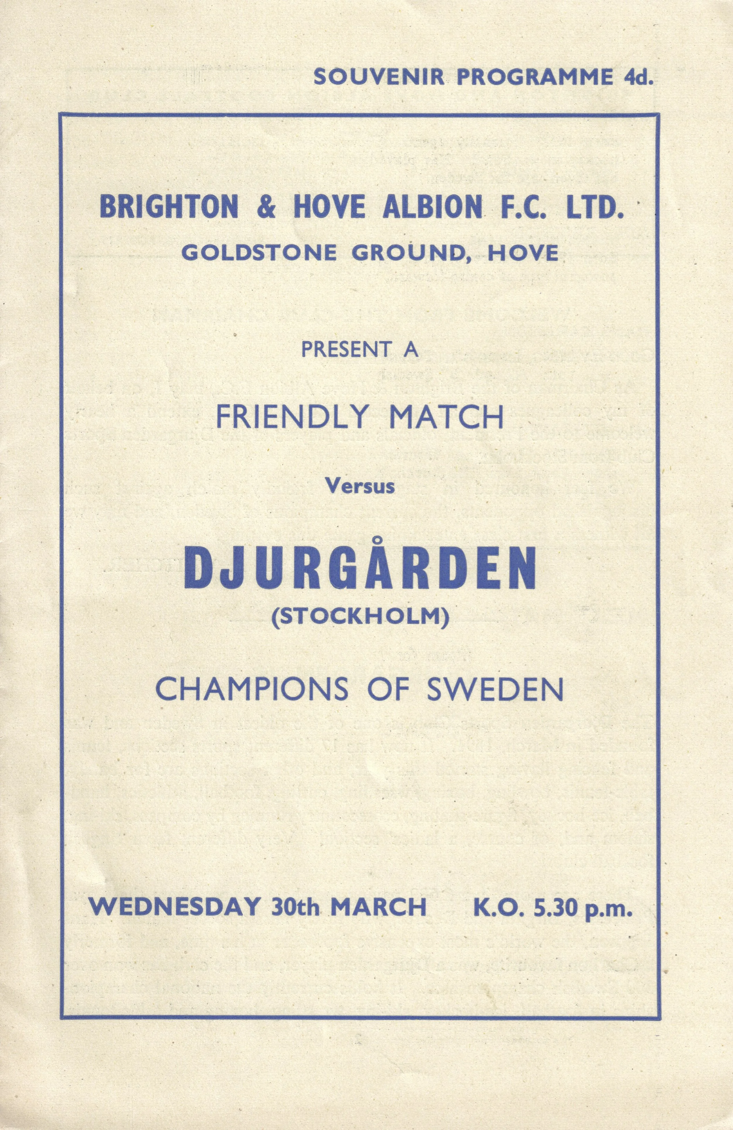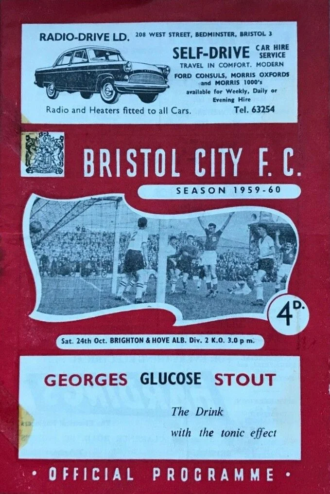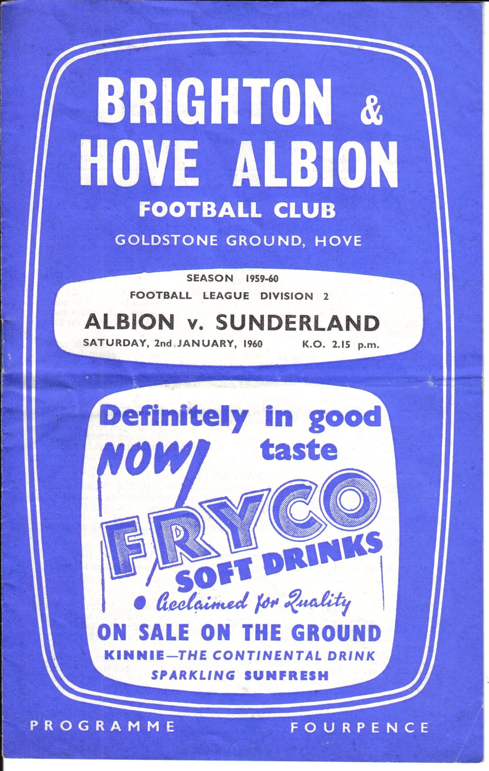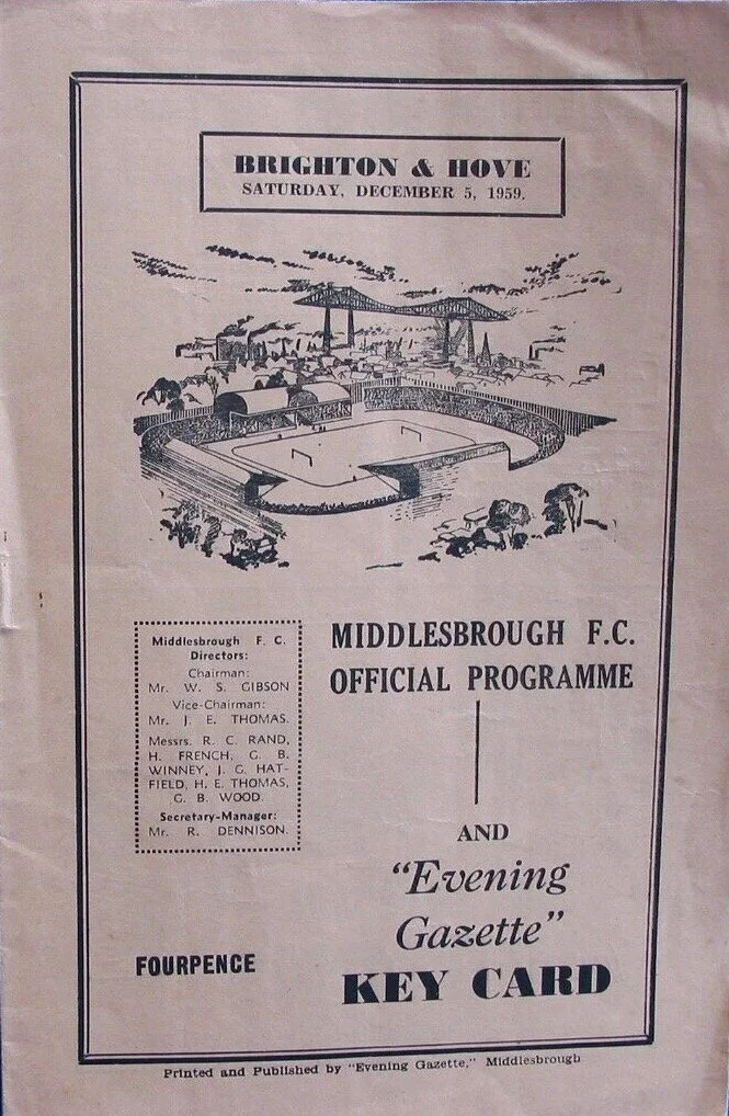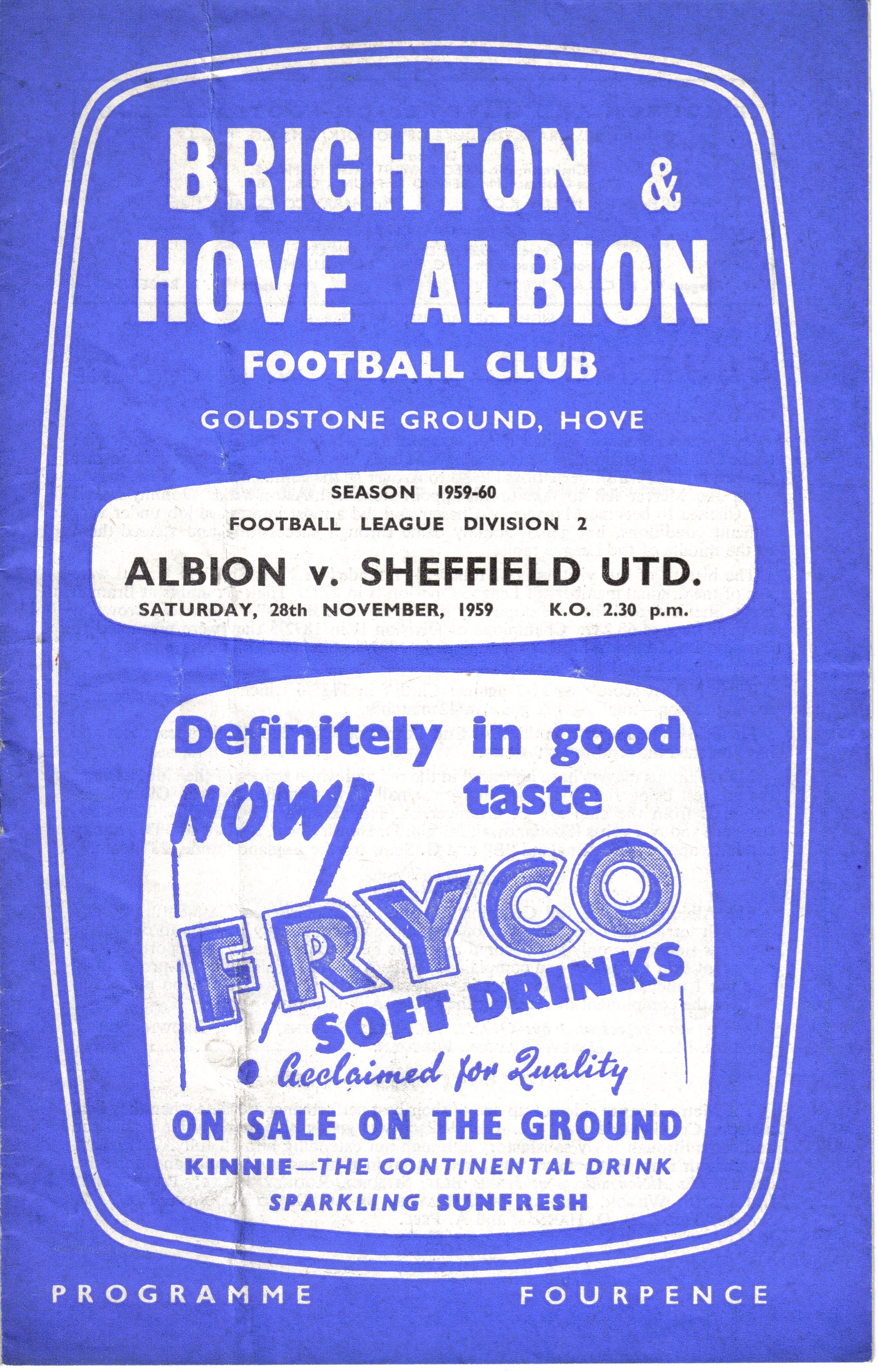 Straightforward for 1959/60, with 21 8-page programmes issued for the league games, plus 1 4-pager for the FA Cup 4th round replay against Rotherham United in Feb 1960. The format was almost identical to the previous campaign, although the picture experiment was abandoned. The 2 friendly programmes are interesting in that they were produced with a cream (Djurgarden) and yellow (Fluminense) cover. The internal pages for the latter game were also yellow.