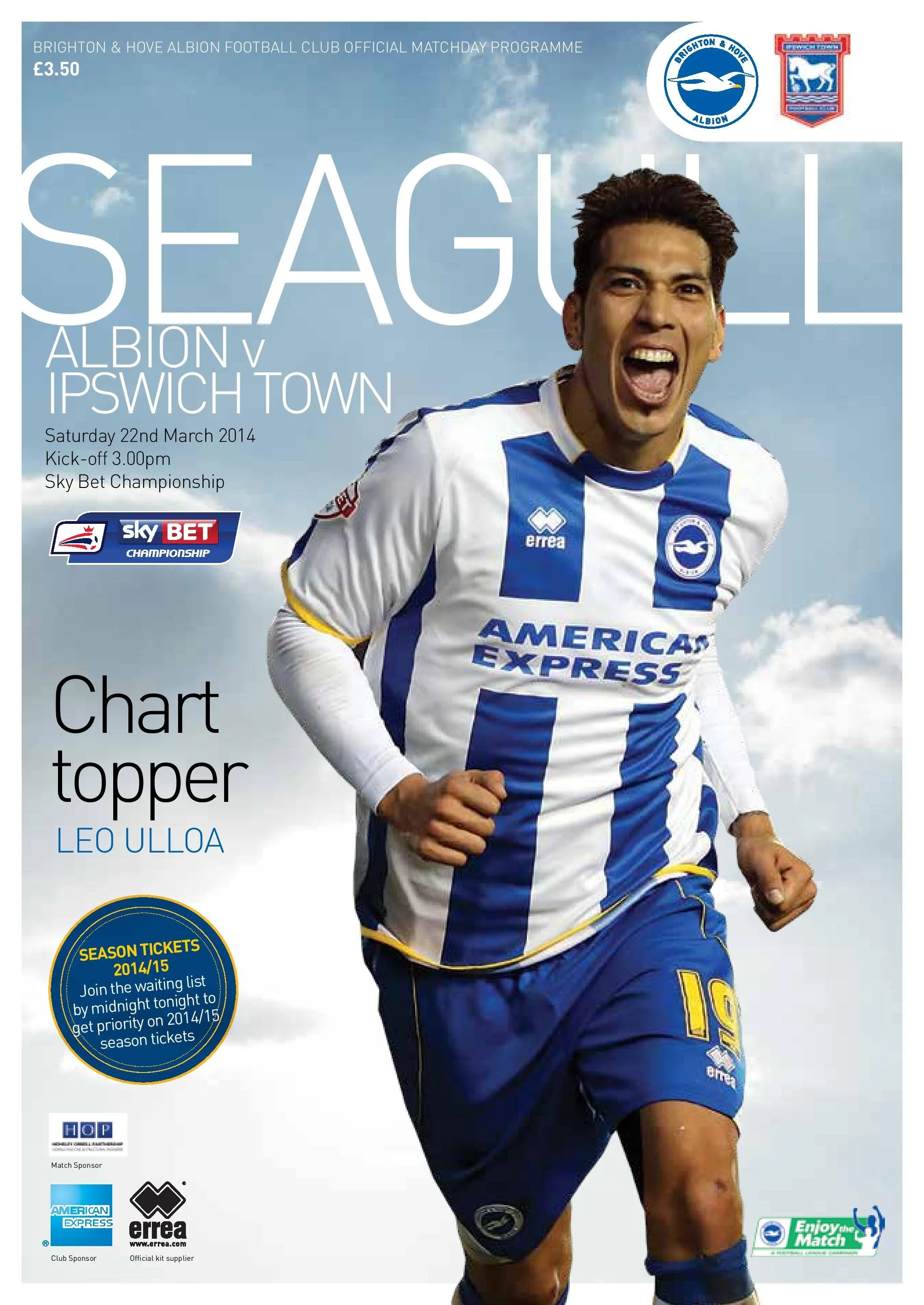 A bumper year for programmes! Twenty-three league games, one play-off programme, plus one in the Capital One Cup and two FA Cup fixtures. All issues were 84 pages, apart from the two cup games, reduced to 36. The friendlies against Norwich City and Villareal were covered by a 2-in-1 programme with a reverse back to front cover.