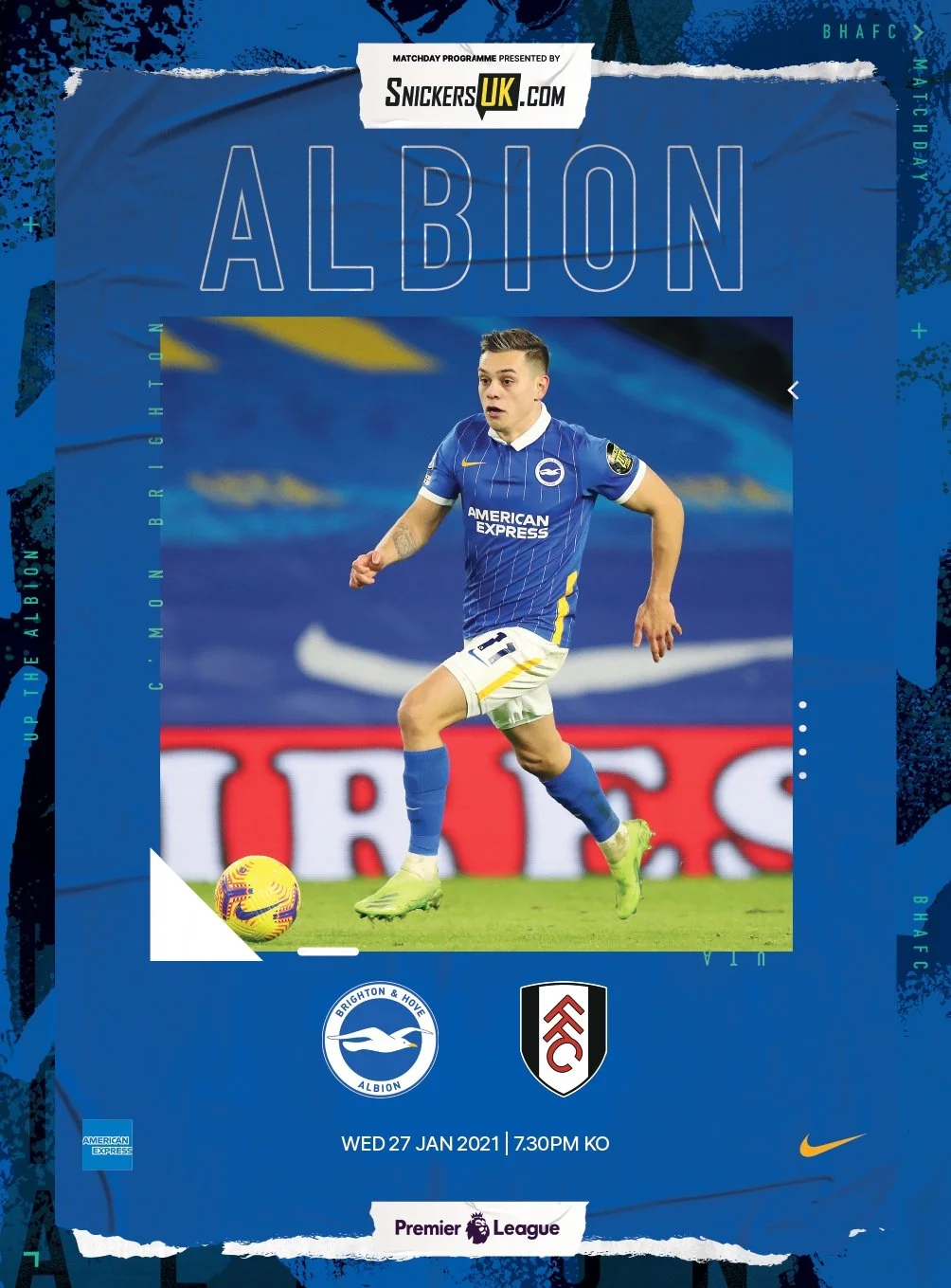 Click on the images below for full scans of all home programmes, which were issued in paper format, despite the Covid Pandemic. The only exceptions were the Carabao and FA Cup games, which the clubs only produced in digital format. Paper copies were issued by the Albion Heritage Society